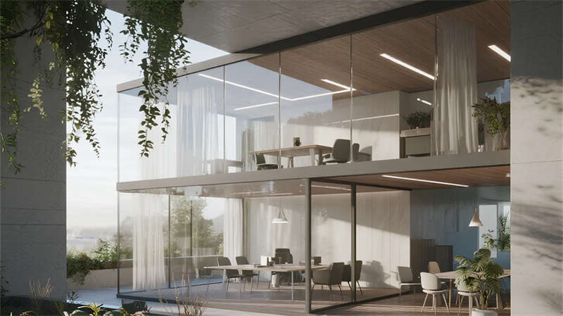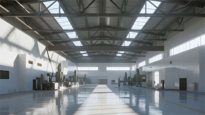 本設計以現代簡約語言重構廠房美學。設計摒棄冗余裝飾,聚焦材料本質——銀灰金屬立面與通透玻璃幕墻形成虛實對比,利落線條切割出幾何體塊,在光影流動中彰顯力量感。廠區布局強調功能與自然的共生:屋頂光伏板陣列呼應綠色生產理念,嵌入式空中花園與竹林連廊為鋼鐵空間注入呼吸感,員工休憩區模糊了工業與生活的邊界。