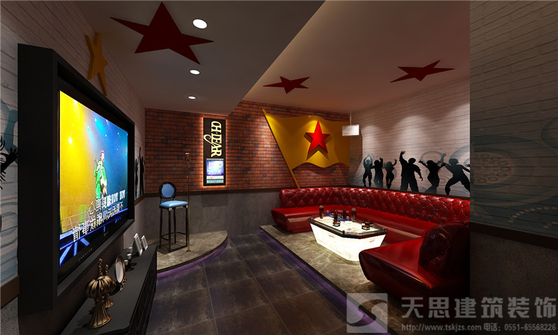 大廳是消費者進入場所的第一印象,是KTV裝修設計的關鍵。KTV大廳設計中最重要的要素就是寬敞明亮、有親和力,方位擺放等也要符合風水的要求。大廳在材質上要選用容易清潔的飾面材料,地面與墻面建議采用連續性的圖案和花色,這樣可以加強大廳的空間立體感,同時,還要注意減少噪音的影響。