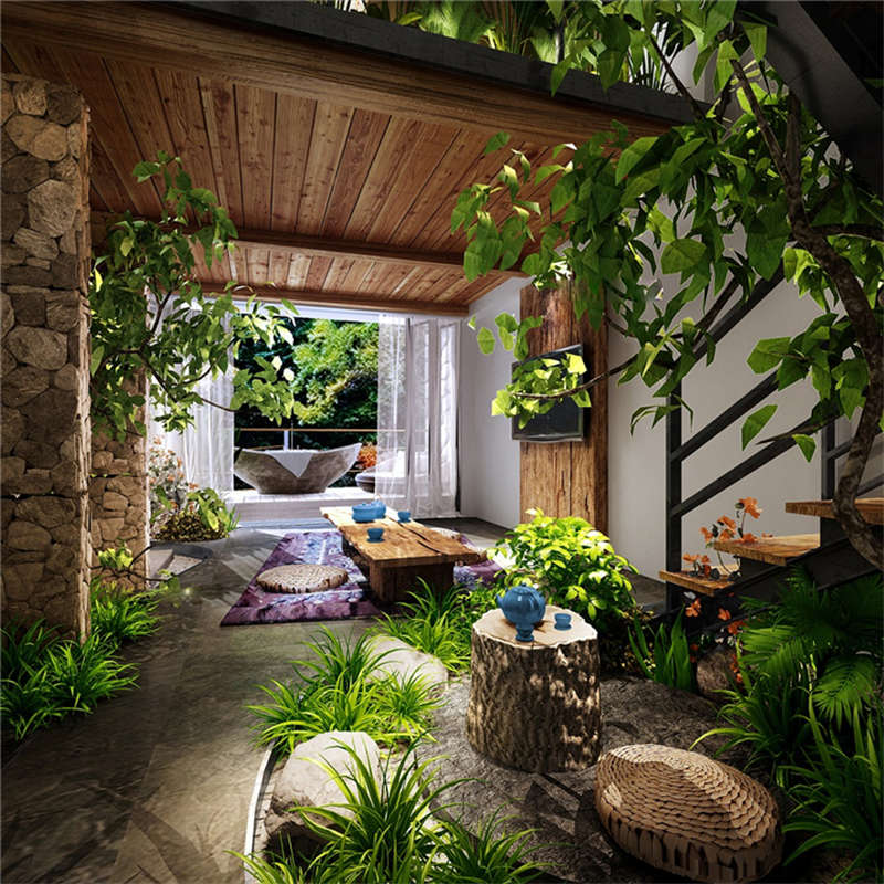 本案民宿度假酒店采用東南亞裝飾設計風格