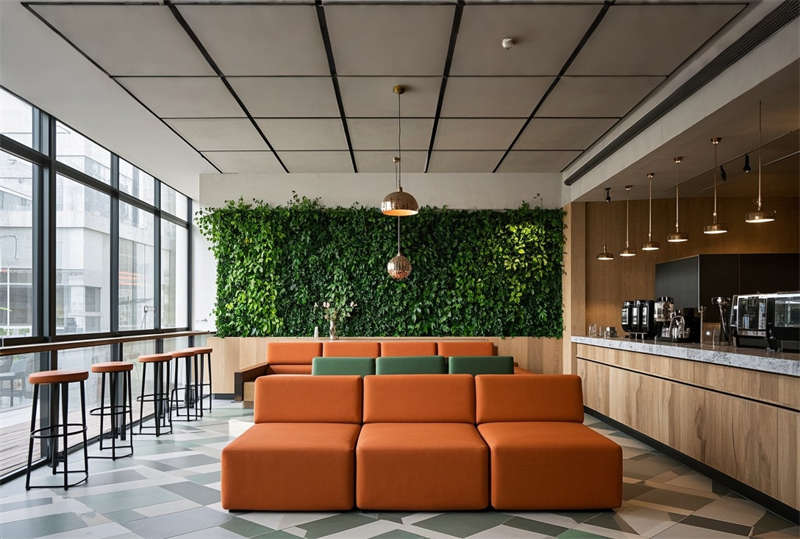 本案為 6000 平方米現代化科技辦公樓裝修項目,設計采用 ' 未來辦公生態 ' 理念,以藍灰主色調構建專業商務氛圍。空間規劃突破傳統格局,大堂設置 10 米挑空 LED 藝術裝置墻,智能光控系統實現晝夜模式切換。開放式辦公區采用模塊化組合家具,集成無線充電、智能升降等人性化功能。會議室配置可觸控霧化玻璃隔斷系統,實現空間靈活轉換。特別設計的階梯會議中心配備全景聲控系統,墻面采用吸音穿孔鋁板確保會議私密性。環保理念貫穿始終,選用零甲醛板材和可回收地毯,屋頂花園配置雨水收集系統。燈光設計采用色溫可調 LED 光源,通過智能中控系統實現場景模式一鍵切換,打造高效、舒適、可持續發展的新型辦公生態圈。