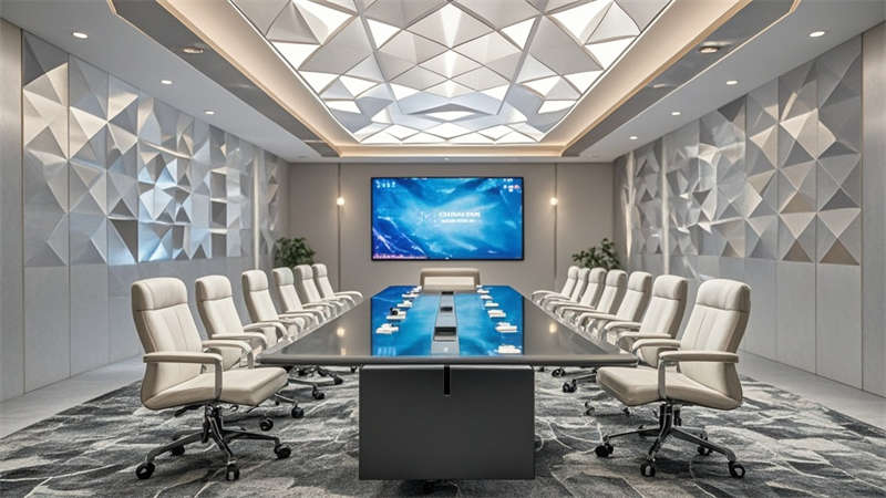 智能系統集成包括電動百葉簾、會議預約系統、環境監測顯示屏等科技元素,茶水間與休息區特別設置空氣凈化綠植墻。燈光設計采用3000K-4000K色溫可調系統,走廊采用線性引導光帶提升導向性。