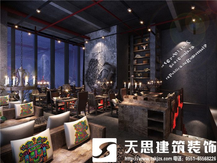 吧臺處,由瑪雅建筑紋理拼接的背景墻以及傾斜的人面雕塑敲碎的太陽歷都展現著一種不可逆轉的歷史思維,形象精美的浮雕彰顯出貴族氣質和王者風范。所有素材原始自然沒有冗余的修飾,在簡約純粹的大背景下,巧妙鋪排空間,著力烘托出有內涵、高品位、精英范兒、國際化的精神理念。