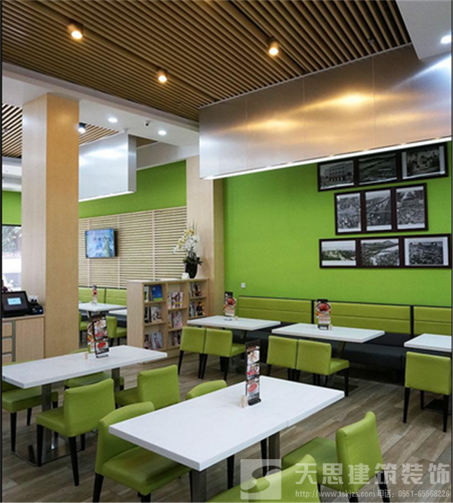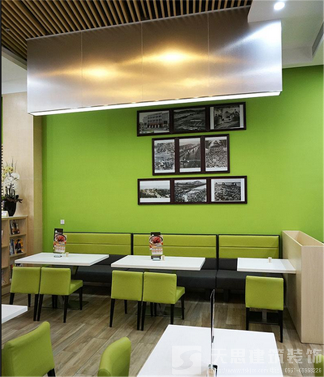 考慮到茶餐廳的飲食文化和特點,整個餐廳設計講究明亮通透、舒適清新,為保證有一個簡潔明亮的空間效果,又不會讓整個環境過于雜亂。