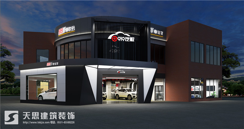 設計公司:安徽天思建筑裝飾 設計項目:919汽服汽車美容保養店設計 設計師:梅工 設計面積:460平方 項目地址:肥東 頂面環形效果 外立面效果 維修車間效果 無塵車間效果 洗車間效果