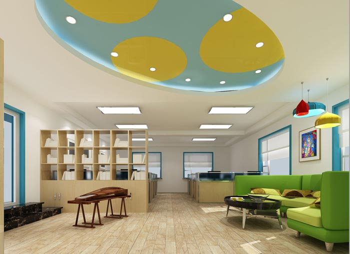音樂教室的設計:對于每一個人來說,音樂都是美好的,對于孩子來說更是如此,當老師彈起鋼琴的時候,孩子們在后面翩翩起舞,無疑可以激發孩子們對于音樂的興趣,這里的一切都志在激發孩子的興趣,然后在興趣的指引下,達到教學的目的。