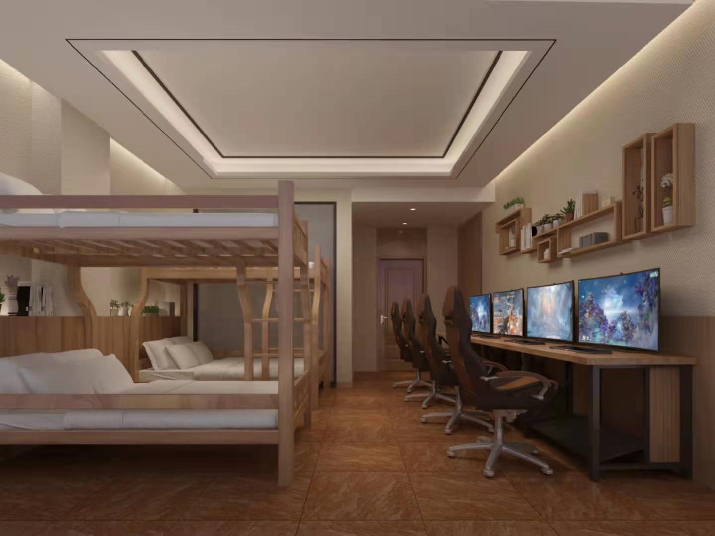 這樣的設計方式目的就是為了更大范圍的貼合客戶的需求,娛樂與舒適一體是電競酒店裝修設計的重點。而且客房的設計形式不應該千篇一律,應該為有不同需求的顧客打造不同設計的客房室內,例如有兩人好友來電競酒店“開黑”,酒店設計就應該考慮到雙人電競客房,如果是職業電競戰隊前來入住,就應該準備五人、六人的專業電競客房,最大程度滿足酒店目標客戶的需求。