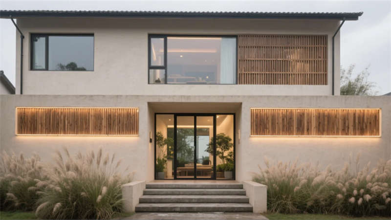 本案以“現代自然主義”為核心理念,將合肥山水肌理與當代設計語言交融,打造一座會呼吸的城市棲居地。建筑外立面以淺米色微水泥為基底,橫向原木格柵與嵌入式線性光帶勾勒出簡約輪廓,入口矮蒲葦隨風輕搖,模糊室內外界限。