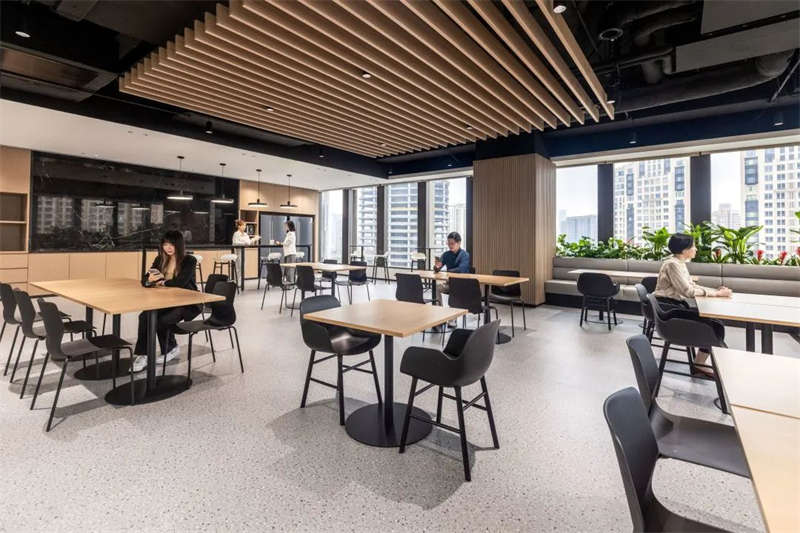 辦公室中設置了豐富多樣的協作空間,可以滿足不同團隊的討論需求,位于空間中央位置的WorkCafe兼具用餐、交流、辦公等多種功能,員工在忙碌之余稍作停歇,放慢生活節奏,享受愜意體驗的同時,亦能感受到企業的人性化關懷。