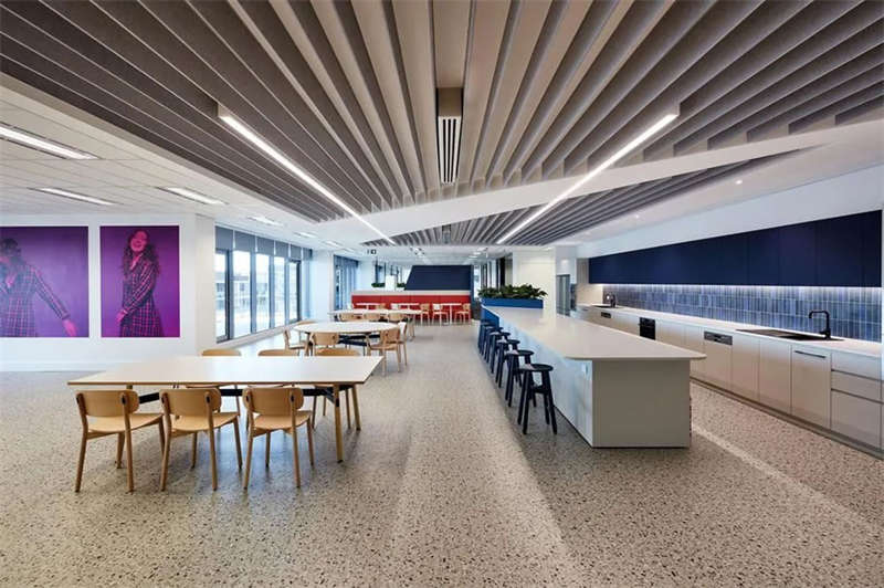 這處新空間包含了應對新冠疫情工作場所應具備的所有關鍵組成部分。到達這里后,一道可移動的超大墻體貫穿整個空間,打開后,這里可以舉辦大型活動或全體人員會議;關閉后,可以通過多種方式對空間進行重新配置,使這里能夠滿足董事會議、培訓和各種研討會的需要。