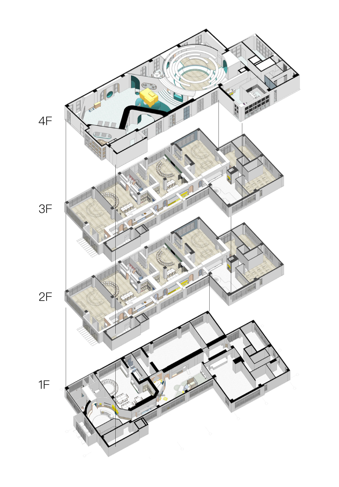 兒童喜歡通過身體來丈量和感知空間.因此,創造符合兒童生理尺度的空間能夠激發更多的行為方式.兒童也常喜歡待在自己可觸摸到的小空間中.設計創造出的空間價值可以賦予使用者特殊的魔力,在豐富多樣的教娛空間中,每一個孩子都是不受束縛的夢想家.用簡潔明亮的色彩把控,勾勒出空間內不失童趣的高級質感,培養孩子的基礎美學與審美素養,正是空間帶來的啟蒙.