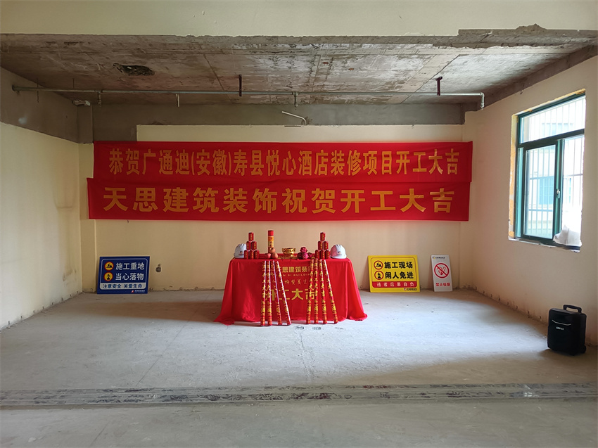 祝淮南壽縣悅心酒店裝修開工大吉