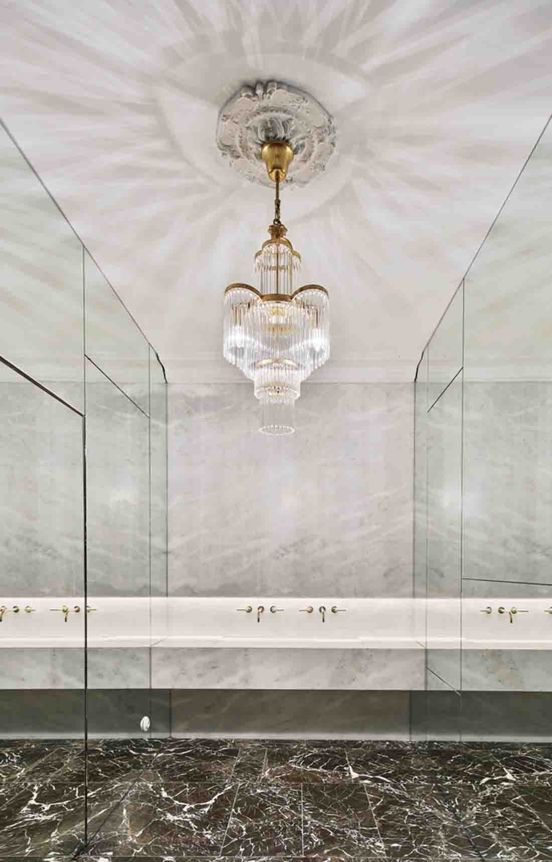 在主樓梯中,天窗被水淹沒,變成了一個帶有透明底部的小水池,在水中形成了光的活動,使樓梯上充滿了反射。