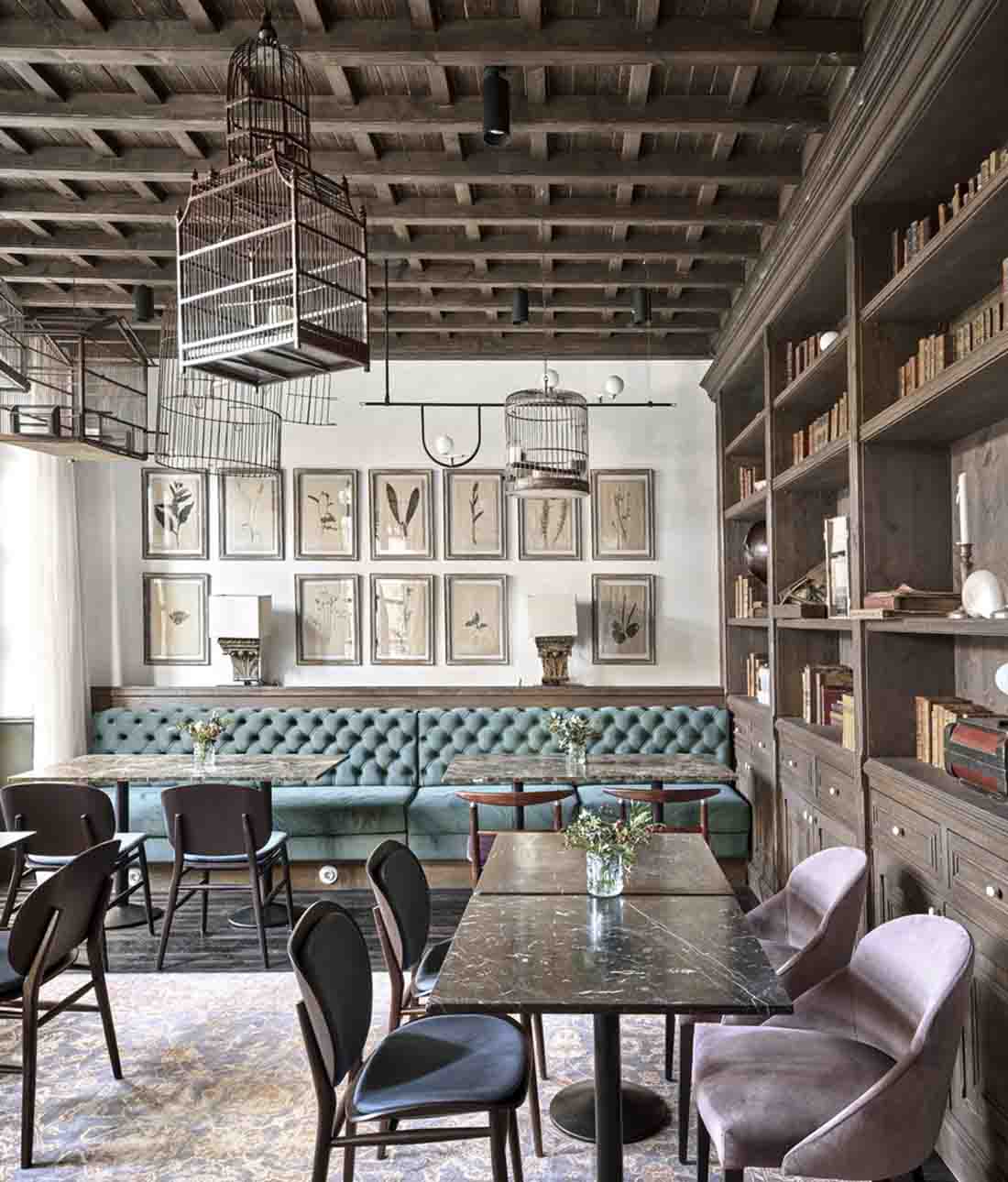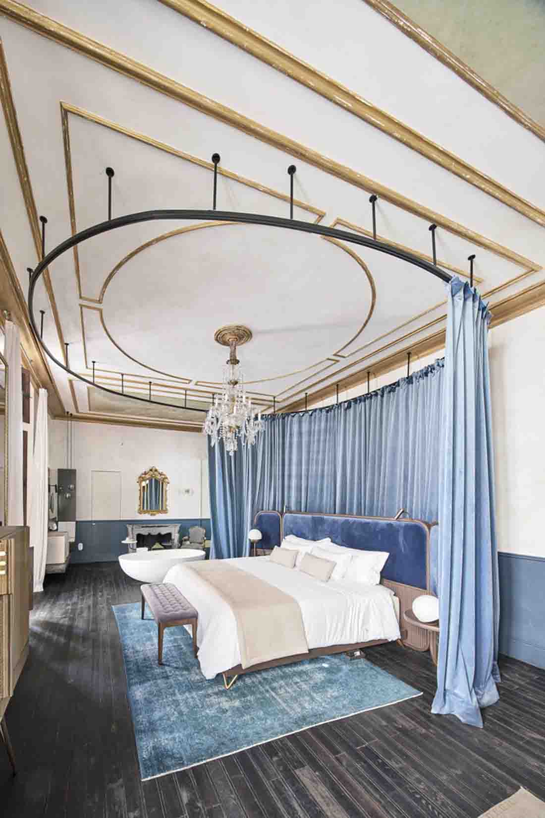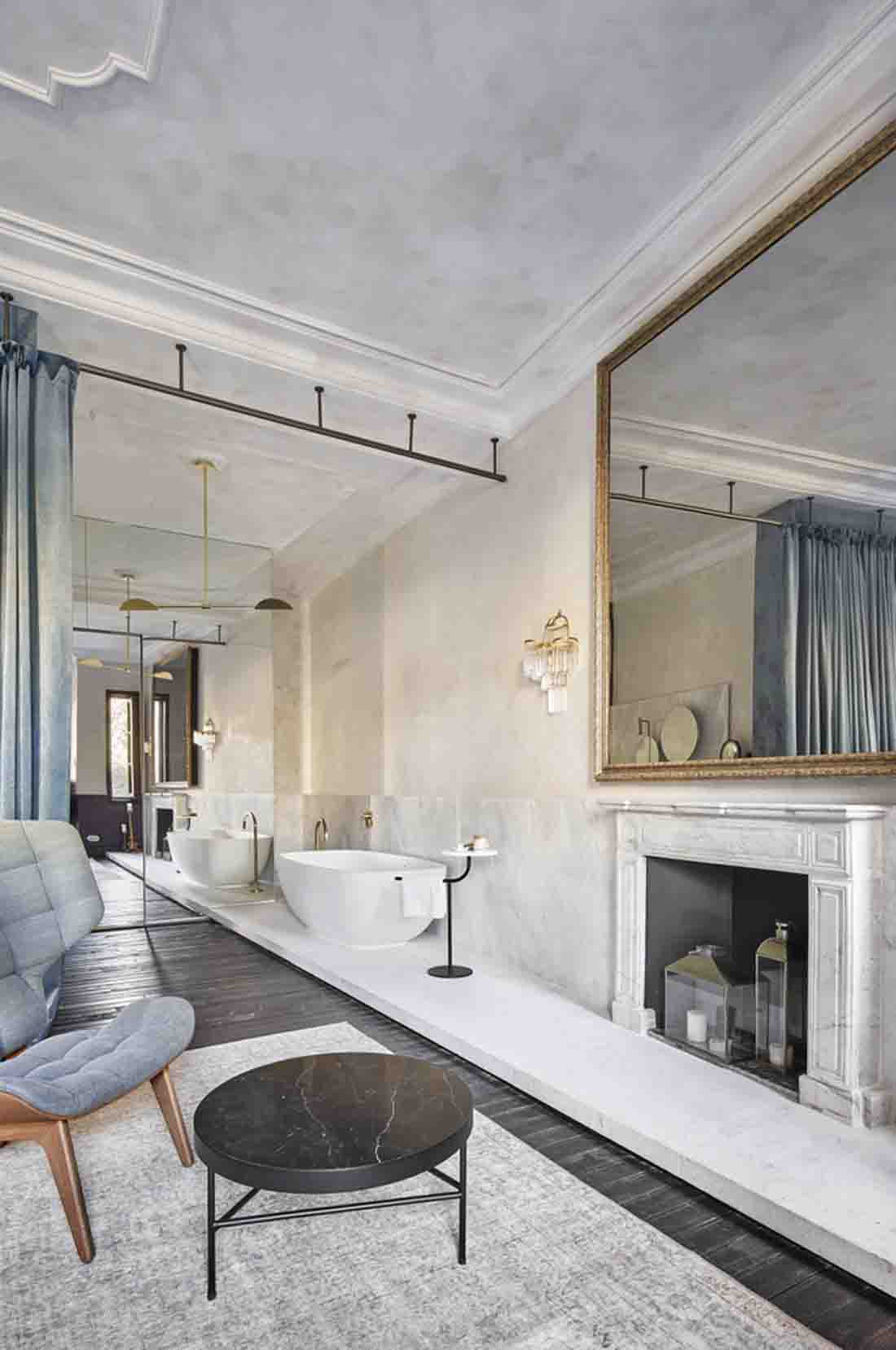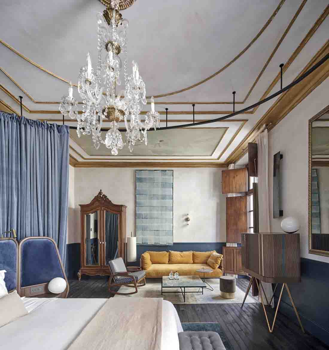 設計師旨在喚起比酒店更多的參觀房屋的經歷。因此,客戶不是在酒店接待處而是在房子的門廳見面;找到的餐廳而不是餐廳,而是找到了居民用餐室,這些房間和客廳就像您在老房子中找到的那樣。該項目精心保留了建筑物中浪漫的氛圍,并與不同時期的干預和元素進行了有意識的對比。這是對現有百年建筑雜交的尊重,它保留了過去的痕跡,并避免了房屋從未擁有過的輝煌過去的錯誤恢復。