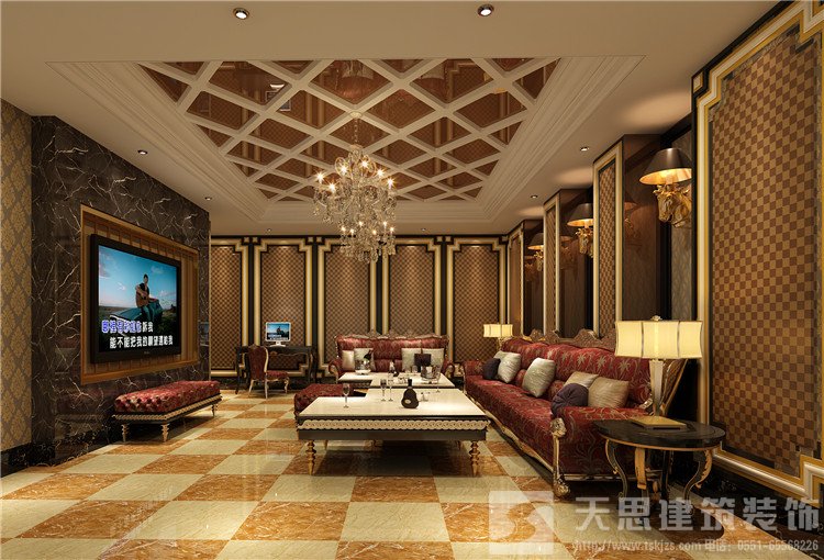 大廳是給消費者的第一印象,是KTV裝修設計的關鍵。KTV大廳設計中最重要的要素就是一定要寬敞明亮,無論你的門面朝哪個方位,大廳的設計都要符合風水的要求。大廳設計在材質上要選用容易清潔的飾面材料,地面與墻面建議采用連續性的圖案和花色,這樣可以加強大廳的空間立體感。大廳的設計要有親和力,讓消費者一進門就能感覺到舒適。