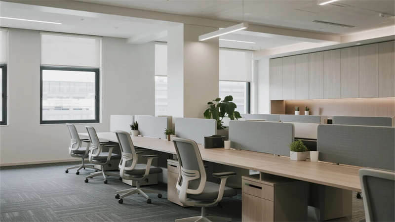 在現代簡約風格的引領下,該辦公空間以開放性和人文關懷為核心,打造了一個流暢而高效的日常工作環境。整體設計強調視覺統一性,通過淺色調的墻面與地板、簡潔的家具線條以及自然元素的融入,營造出寧靜而專業的氛圍。功能區之間無縫銜接,例如協作區與開放式辦公區通過綠植和智能燈光形成自然過渡,確保團隊互動的同時兼顧個人專注需求。休息茶水區則以溫馨的布局促進員工放松,而創意工坊區則激發創新思維,多功能活動區則支持多樣化的工作模式。