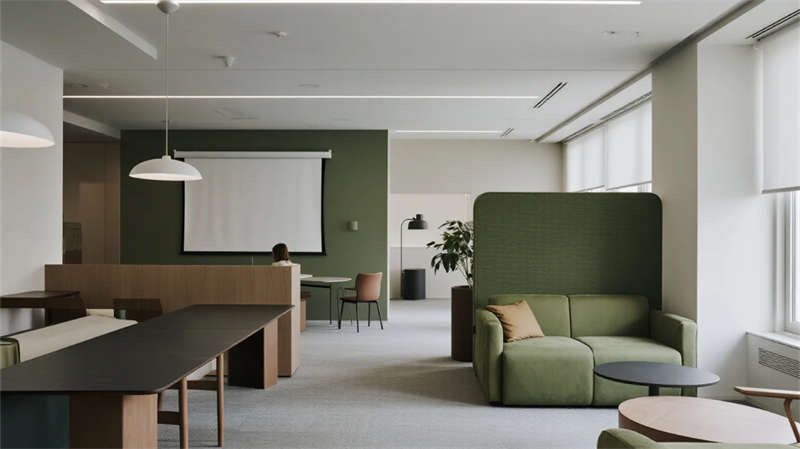 設計中注重舒適與可持續性,大量運用自然光和綠植,不僅提升空間活力,還呼應了生態友好的理念。智能照明系統根據不同時段調節亮度,強化了現代感。整體空間布局靈活,避免了僵化分區,使辦公體驗更具人性化。該方案旨在為使用者提供一個激發創造力、促進協作的理想場所,每一處細節都體現了簡約而不簡單的美學追求,讓日常工作充滿活力與歸屬感。
