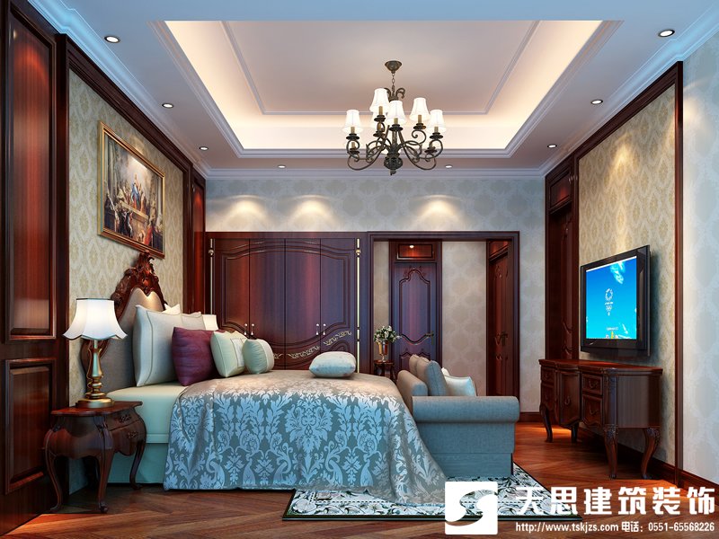 簡介:設計中采用新古典風格,在充滿浪漫氣息之外,又蘊含著厚重的文化底蘊,使其更顯典雅。色彩上以金色、黃色、暗紅為主,整個空間看著穩重大氣。